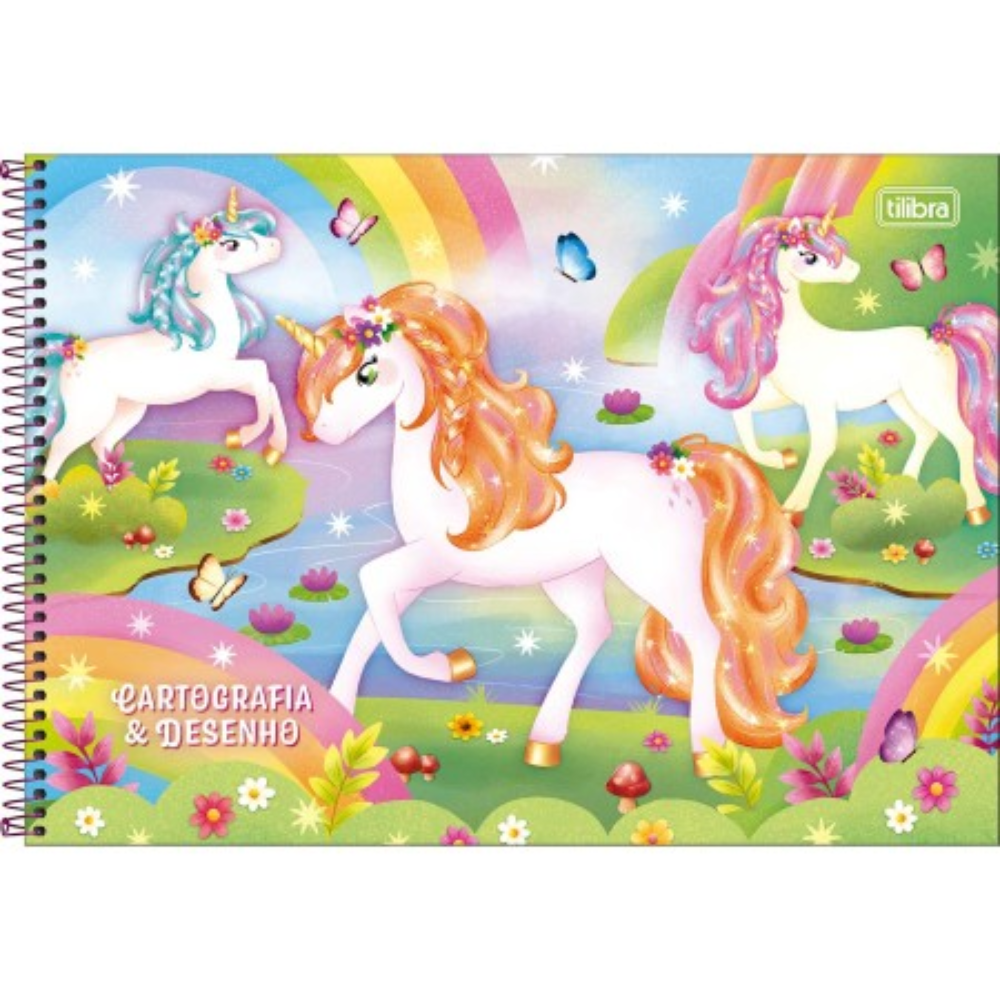 O caderno de desenho Tilibra tem capa dura com ilustrações do universo mágico dos unicórnios, espiral, folha de adesivos e 80 folhas brancas para liberar a imaginação. Adquira já o seu!