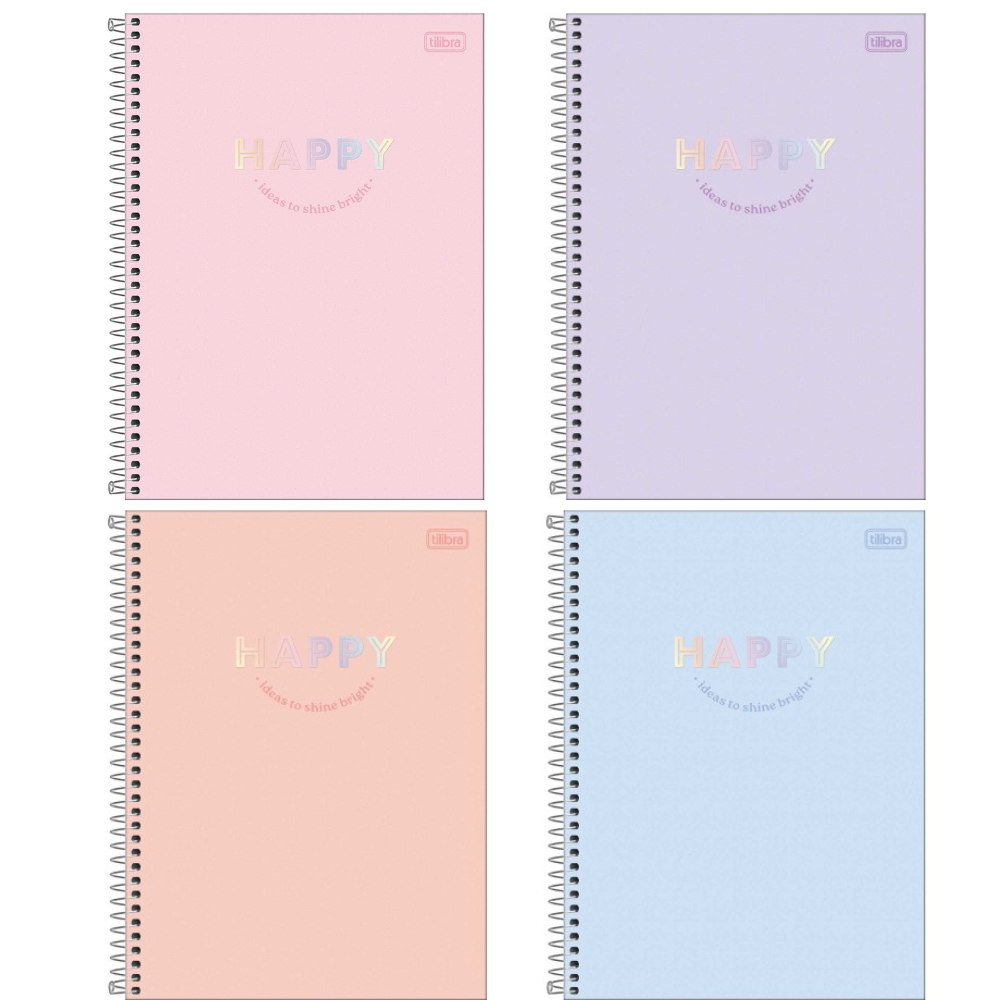 O Caderno Espiral Capa Dura Universitário Connect 10 Matérias Happy 160 Folhas da Tilibra é perfeito para você que busca uma opção para organização da rotina de estudos com visual em cores pastel.