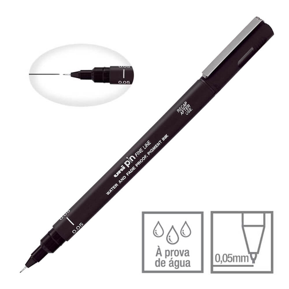 Caneta Técnica Nanquim Uni Pin Fine Line Preta Ponta 0.05