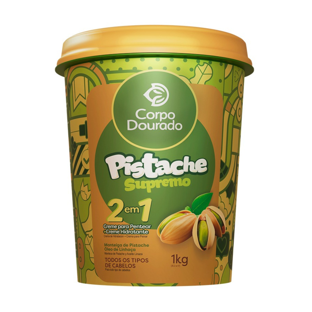 Transforme os cuidados com seus cabelos com o Pistache Supremo 2 em 1, da Corpo Dourado. Este creme multifuncional combina o poder da Manteiga de Pistache e do Óleo de Linhaça para hidratar profundamente, fortalecer os fios e combater o frizz. Ideal para todos os tipos de cabelo, oferece versatilidade com dupla função como creme de pentear ou máscara hidratante, garantindo cabelos nutridos e brilhantes desde a primeira aplicação. Destaques do Produto: - Manteiga de Pistache: Proporciona maciez e hidratação duradoura. - Óleo de Linhaça: Reduz o ressecamento e deixa os fios brilhantes e saudáveis. - Fórmula Rica em Ômega 3 e 6: Nutrição intensa para cabelos mais fortes e alinhados. - Sustentabilidade: Produto vegano, sem parabenos ou petrolatos, com responsabilidade ambiental. Modo de Uso: - Creme de Pentear: Aplique nos fios úmidos, finalize como desejar e não enxágue. - Máscara Hidratante: Após a lavagem, aplique nos cabelos, massageie mecha por mecha e deixe agir por até 20 minutos. Enxágue completamente. Ficha Técnica: - Marca: Corpo Dourado - Linha: Pistache Supremo - Peso: 1kg - Ativos Principais: Manteiga de Pistache, Óleo de Linhaça, Ômega 3 e 6 - Indicação: Todos os tipos de cabelo Por Que Escolher? ✔ Redução do frizz e combate ao ressecamento ✔ Brilho intenso e nutrição profunda ✔ Dupla função para mais praticidade.