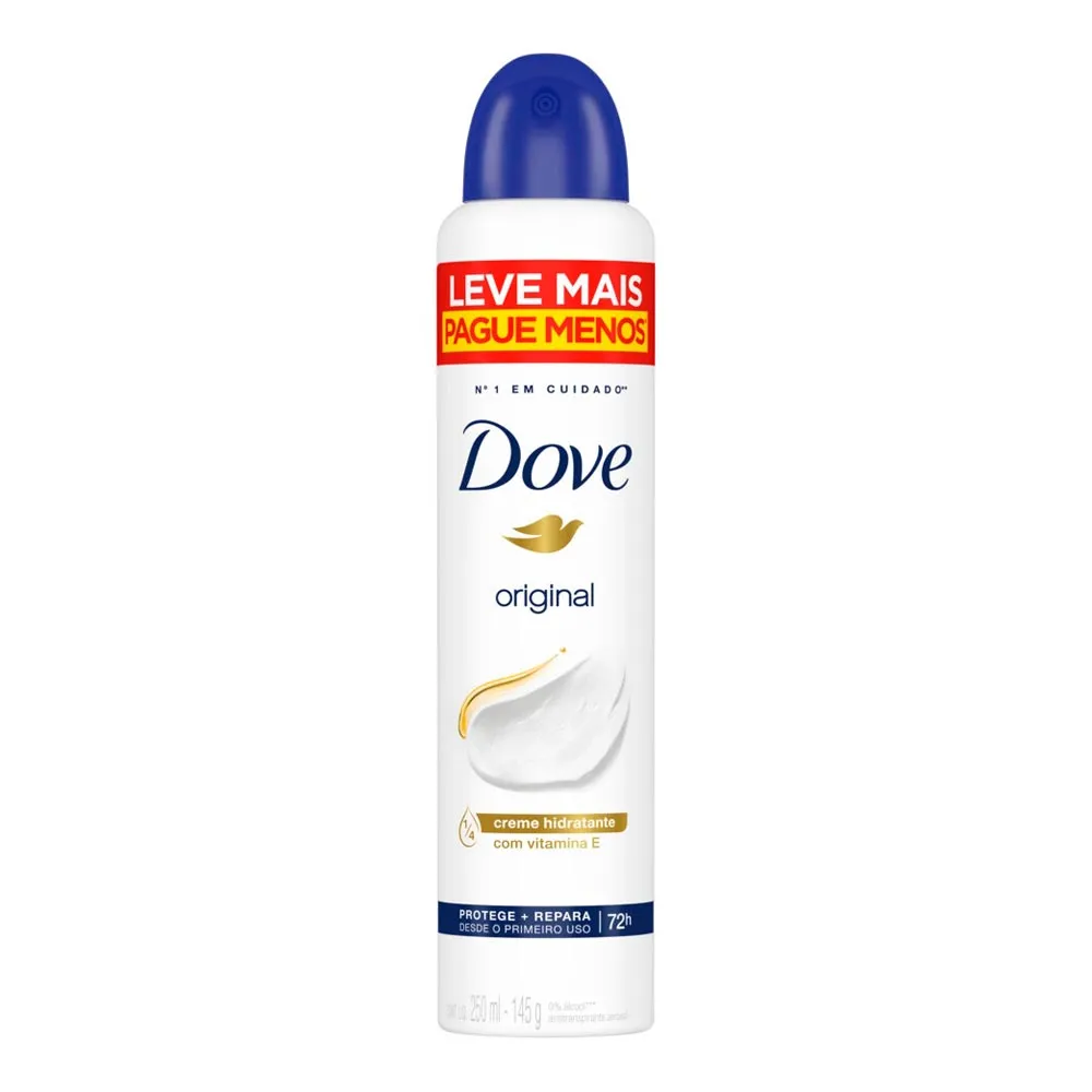 O Desodorante Aerosol Dove Original é ideal para o cuidado da pele delicada das axilas, e para a proteção contra a transpiração e o mau odor. Possui a fragrância tradicional de Dove Original, deixando a pele levemente perfumada, e o exclusivo ¼ de creme hidratante, que nutre e proporciona uma pele mais macia e suave. Além disso, ajuda a pele das axilas a se recuperar de irritações e microlesões causadas pela depilação. Não contém álcool etílico.
