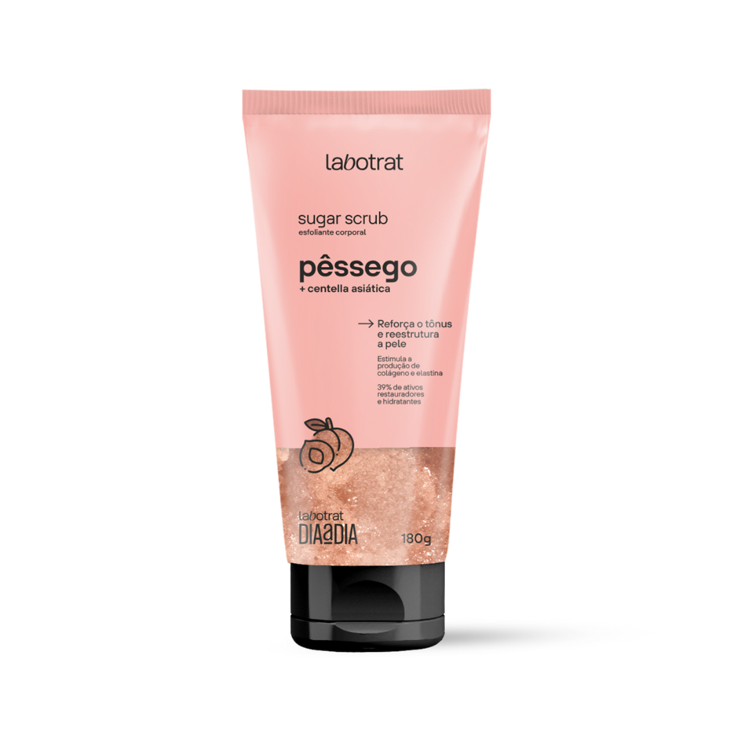 O Sugar Scrub de Pêssego Labotrat proporciona uma esfoliação intensa e delicadamente perfumada, com cristais de açúcar que renovam a pele e deixam um toque suave e luminoso.