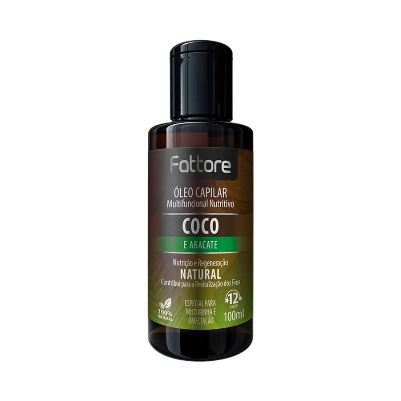 O Óleo Capilar Fattore Coco e Abacate tem o poder de restaurar e nutrir os fios. O óleo de coco penetra profundamente na fibra capilar, restaurando e fortalecendo os fios, enquanto o abacate, rico em vitaminas A, B, C e E, garante uma hidratação intensa e nutrição completa.