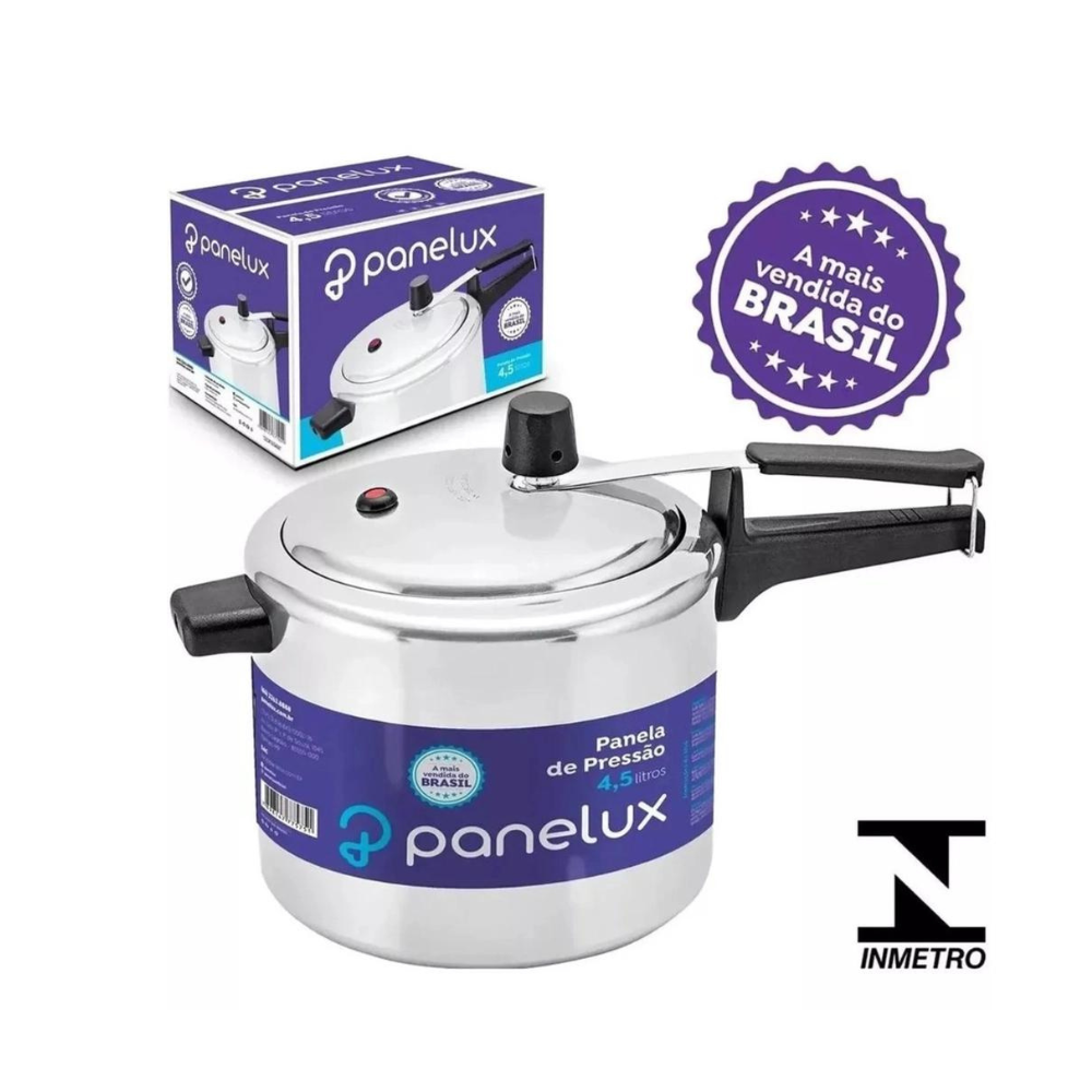 A Panela de Pressão 4,5 litros Polido Panelux é a panela de pressão mais vendida do Brasil. Possui características com alto padrão de qualidade que vão desde a escolha da matéria prima até o processo de montagem com componentes que oferecerão segurança e um melhor desempenho na sua cozinha.