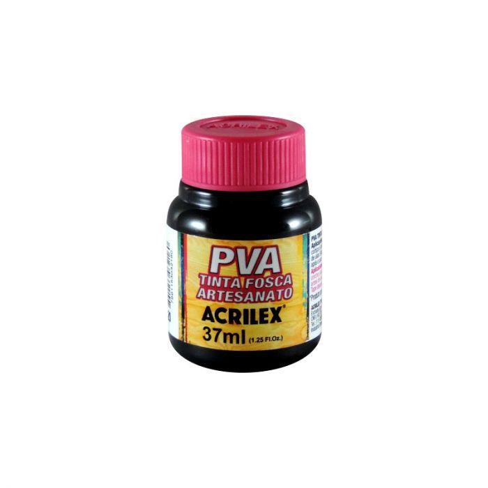 TINTA PVA FOSCA PARA ARTESANATO ACRILEX 37ML COR PRETO.